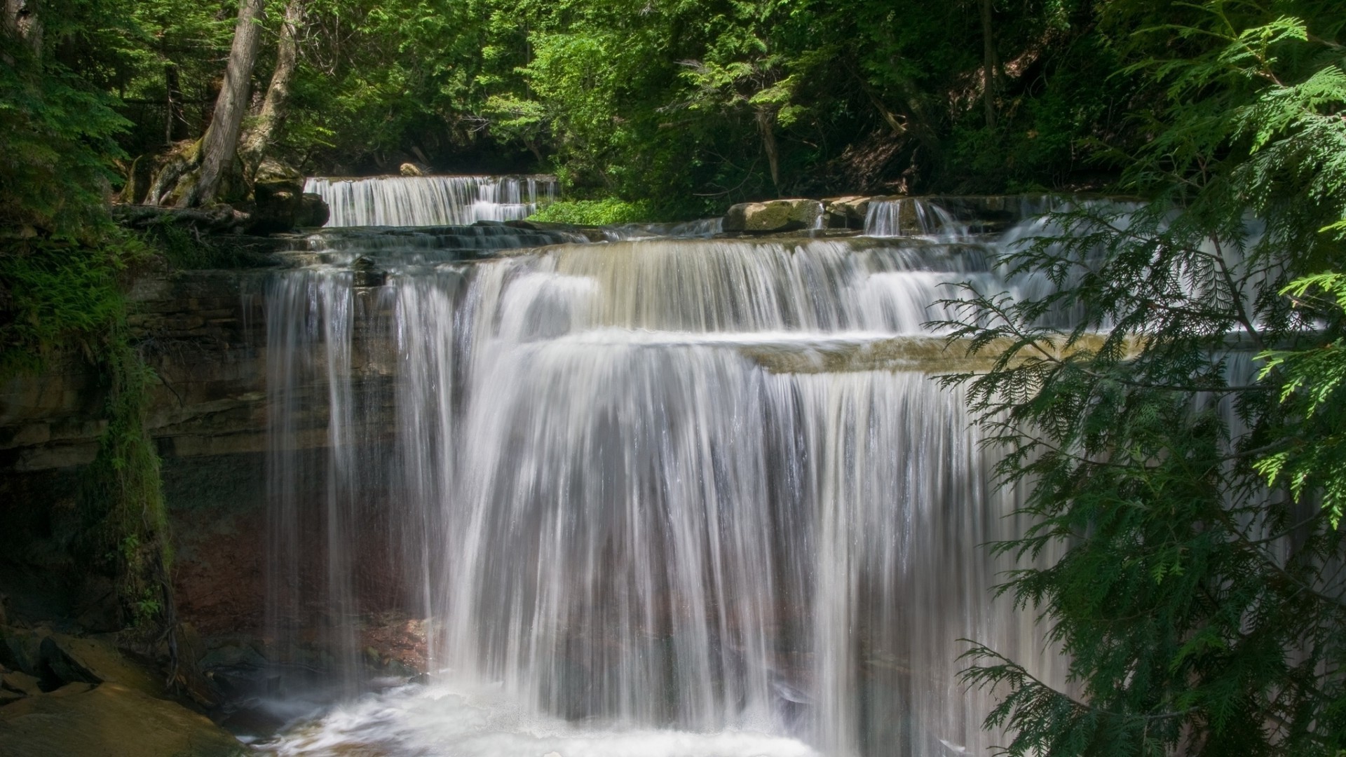 Krajobraz krystalicznie czystych wodospadów