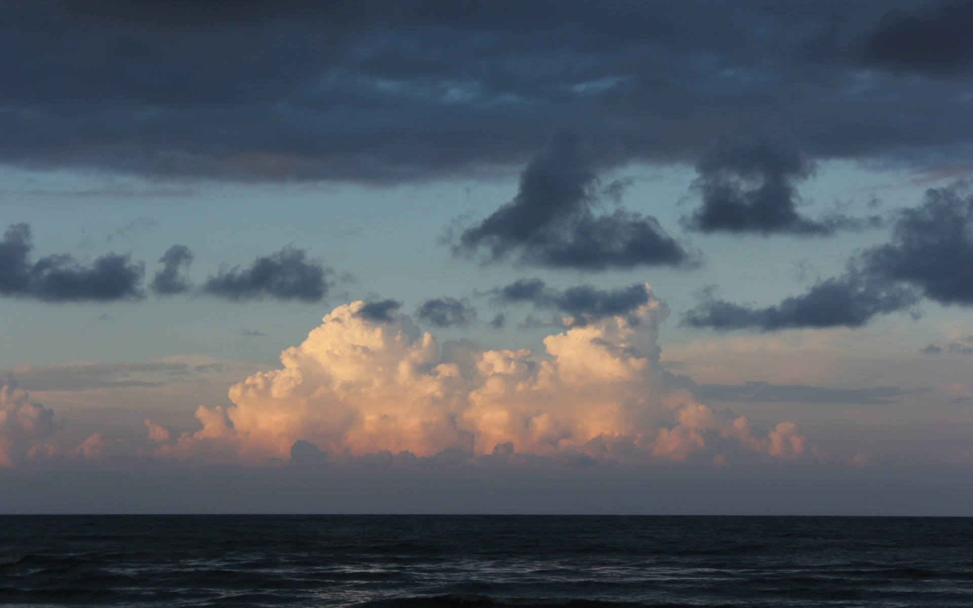 Błękitne niebo i białe chmury żółte kwiaty w polu
