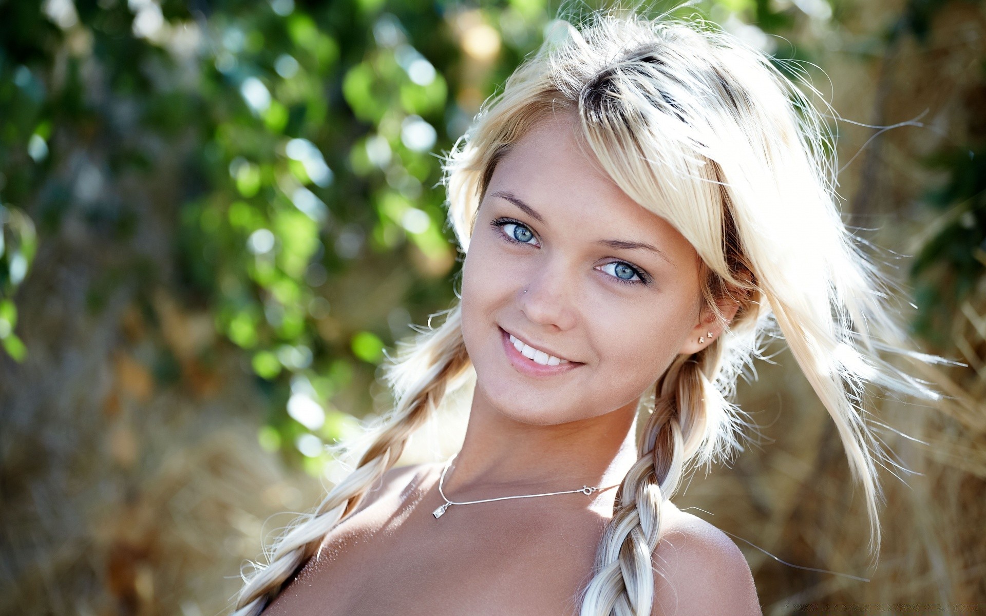 Blondynka z masywnymi kolczykami i niebieskimi oczami