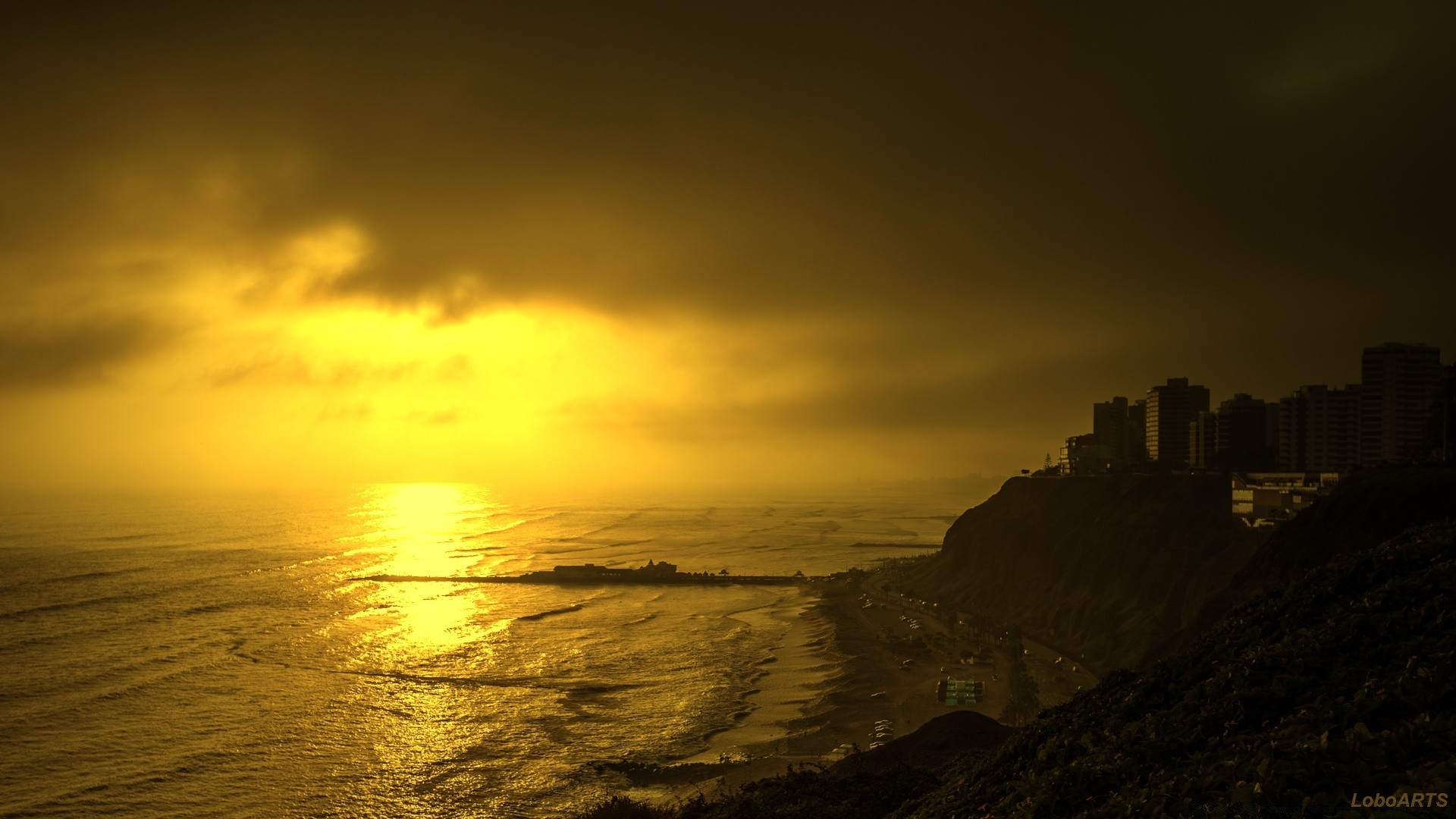Miasto na skale ze słońcem