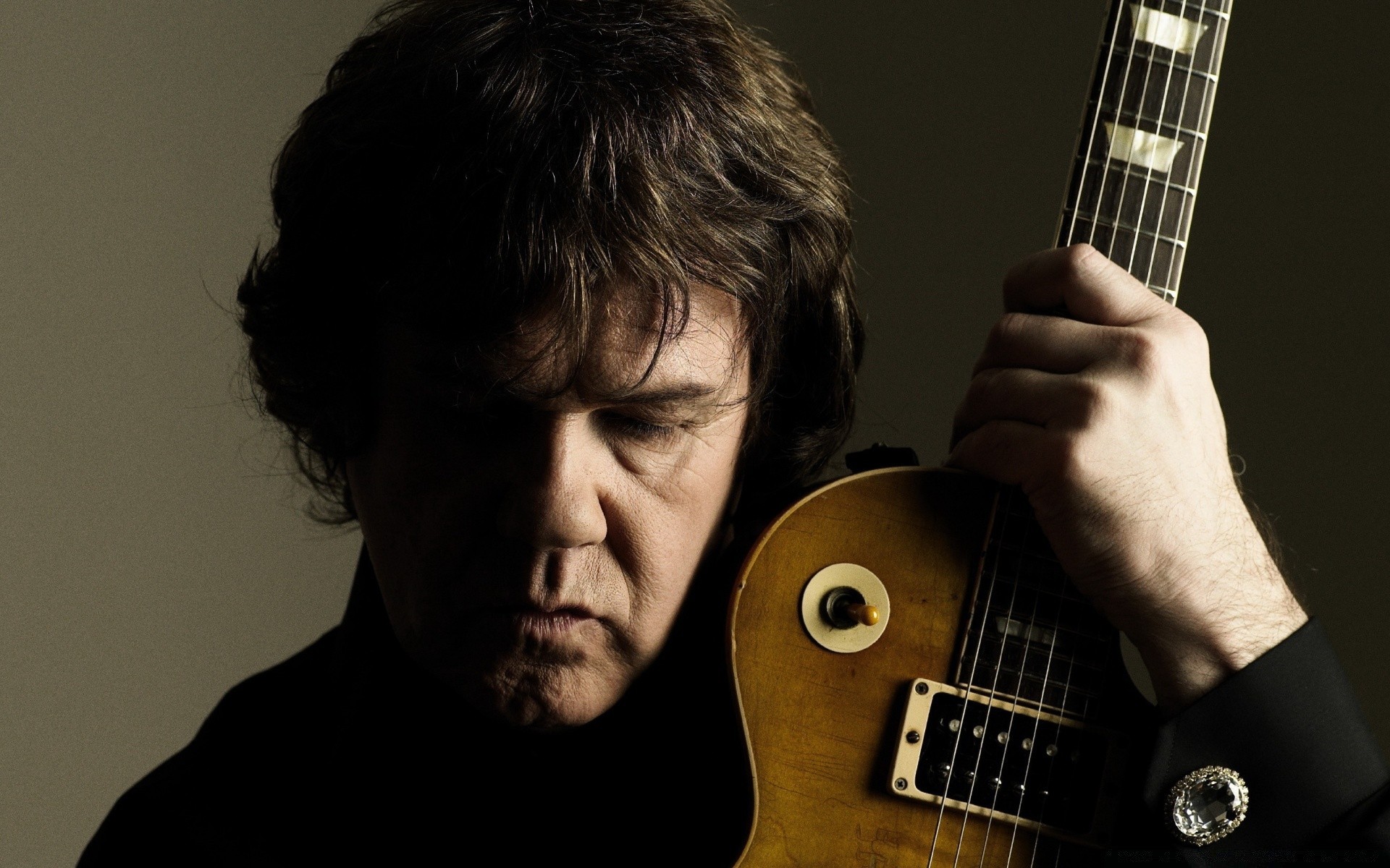 Stary muzyk trzyma gitarę