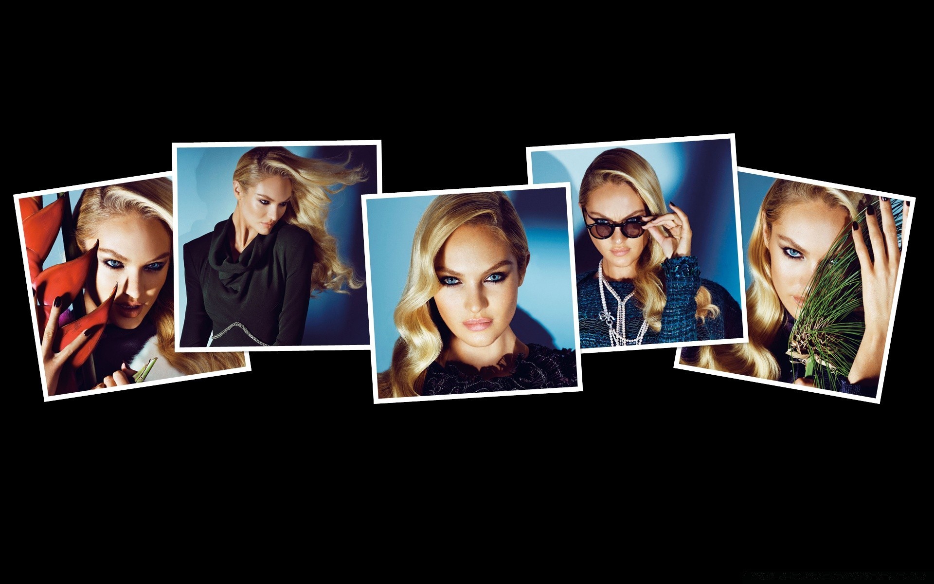 Kolaż zdjęć blondynki na czarnym tle