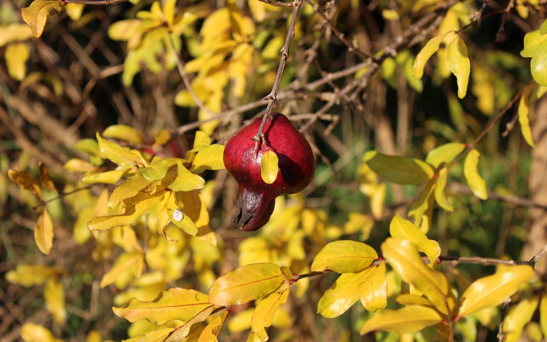 Szkarłatna jagoda dzikiej róży na tle żółtych liści