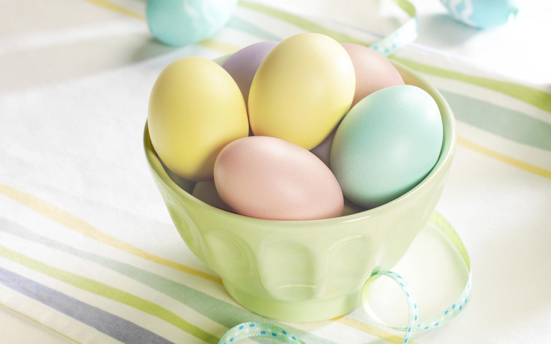 Jajka na Wielkanoc kolorowe ozdobione wstążkami