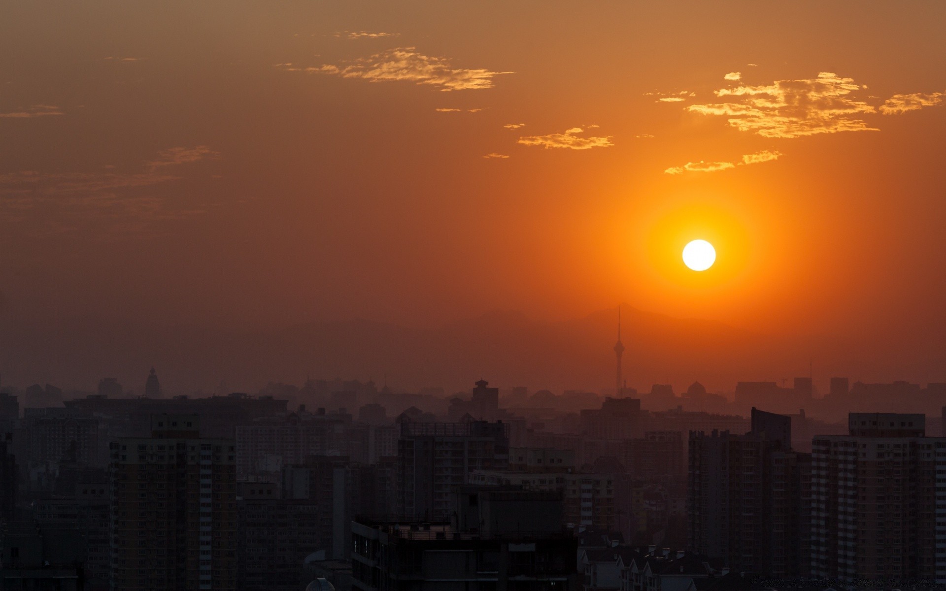Pomarańczowy zachód słońca. Jasny krajobraz