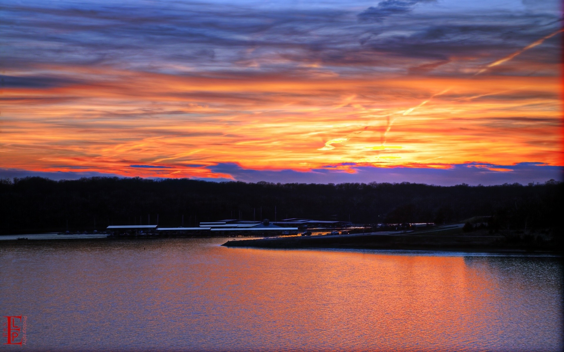 Jasna paleta kolorów zachodu słońca nad jeziorem