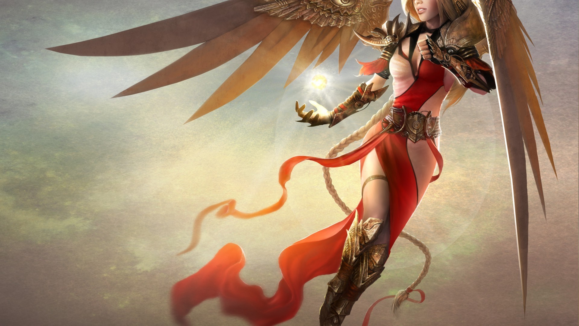 Dziewczyna ze skrzydłami i świecącą kulą w dłoniach