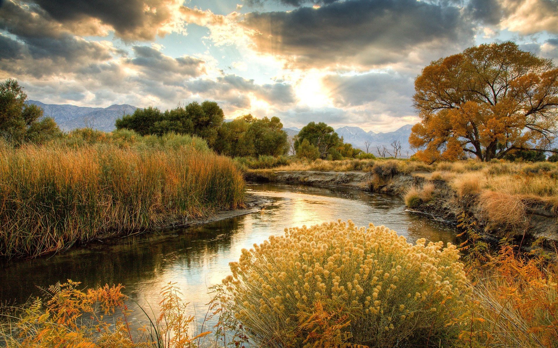 Piękny jesienny krajobraz ze zbiornikiem wodnym