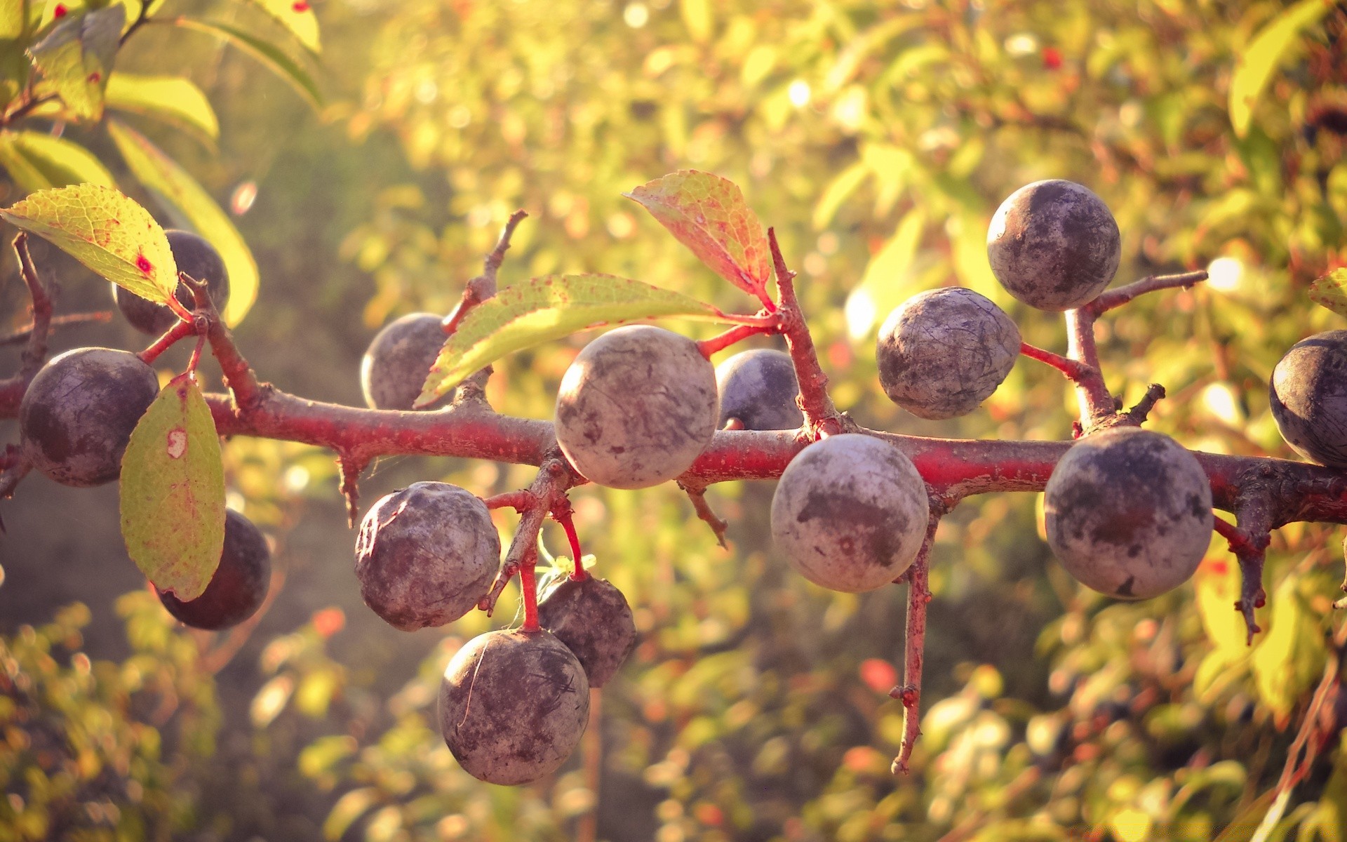 Soczysta śliwka na drzewie jesienny krajobraz