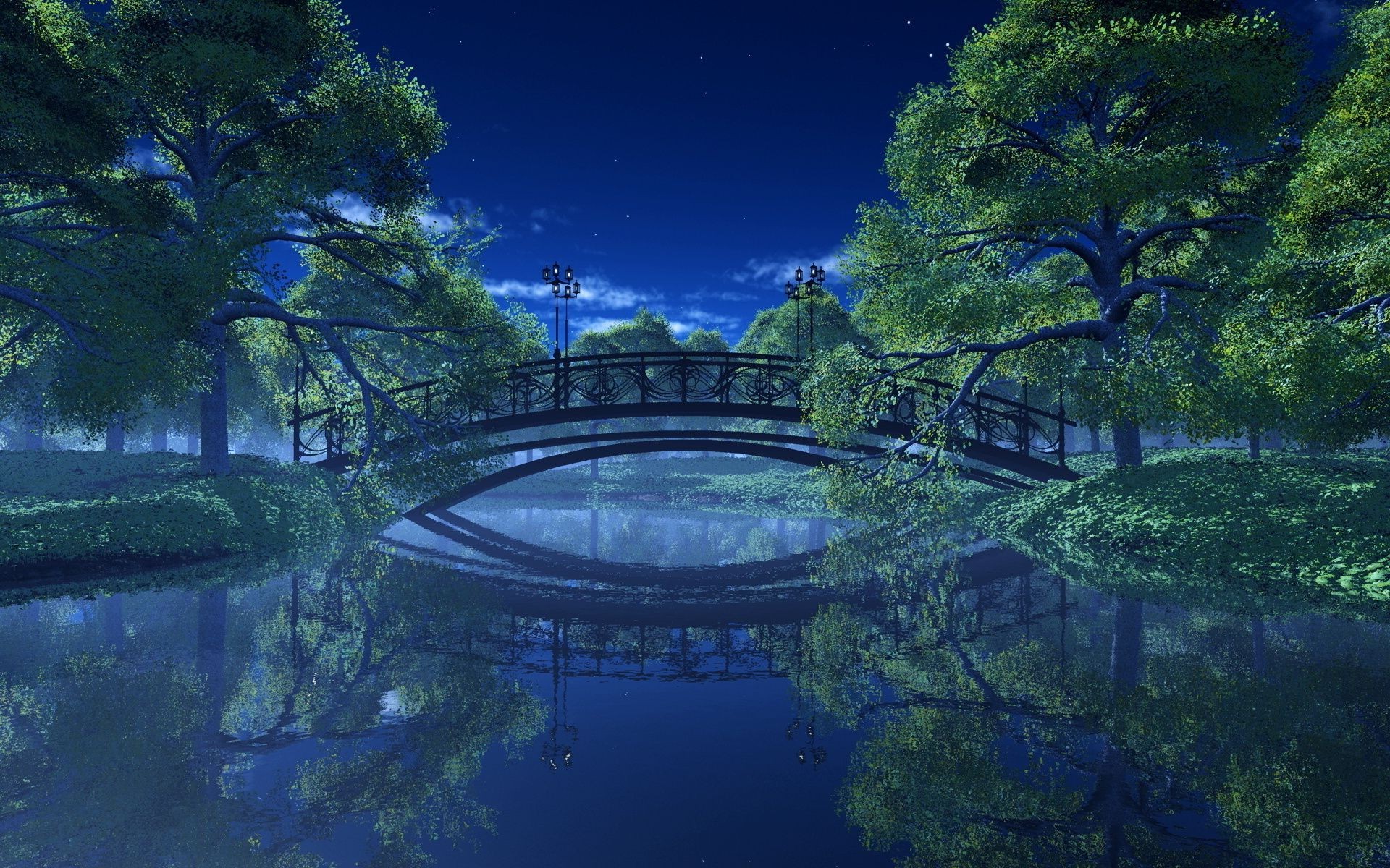 Naturalny zbiornik wodny latem przy słabym oświetleniu