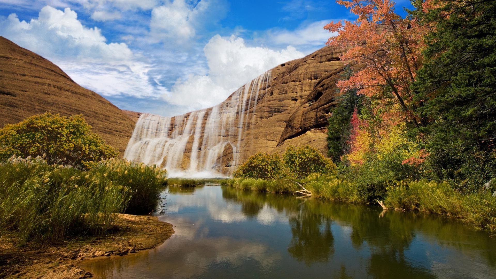 Jesienny krajobraz drzew odbijających się w jeziorze