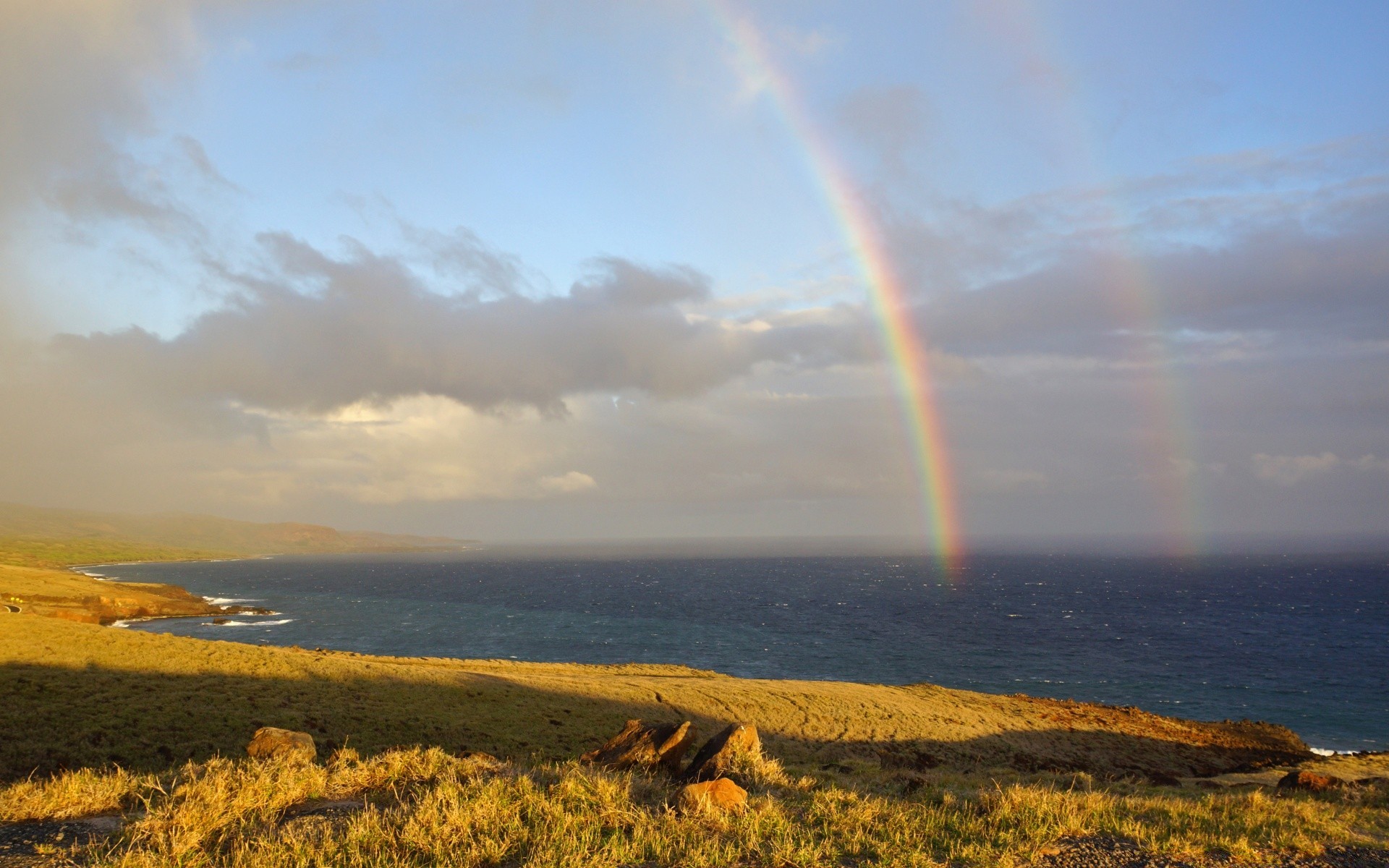 Dwie tęcze wpadają do morza