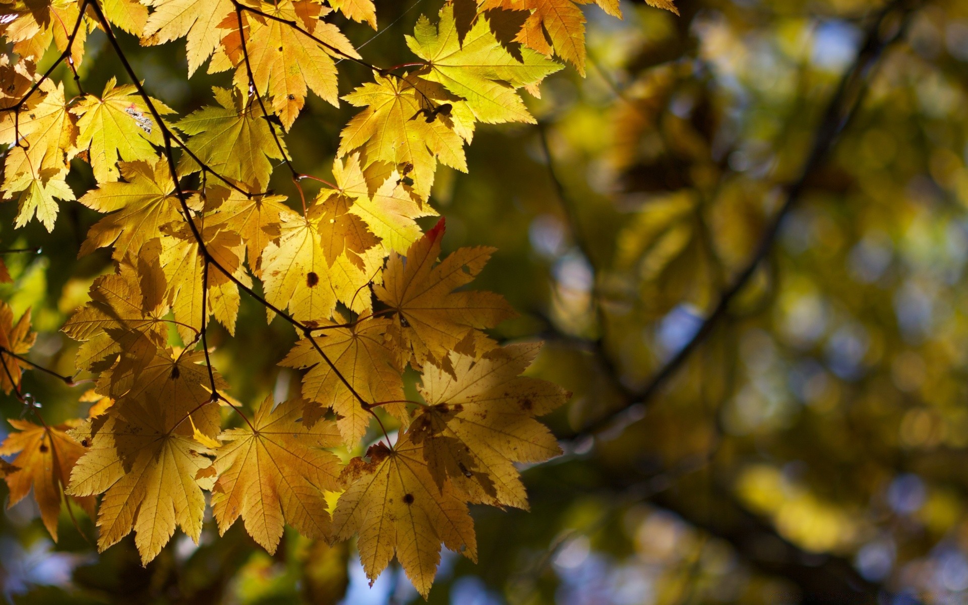 Żółte liście klonu na drzewie