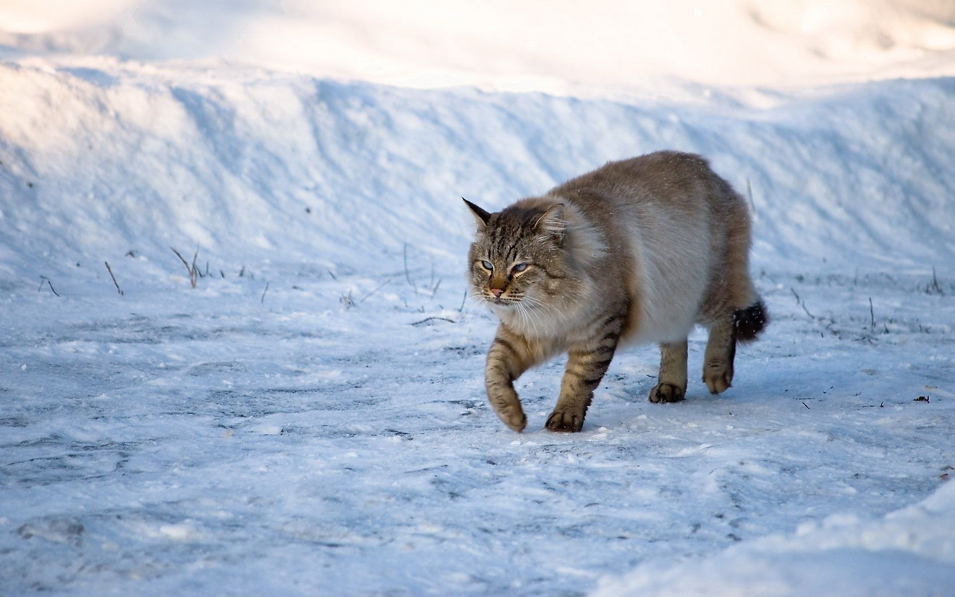 Rudowłosy puszysty kot z bujnymi wąsami patrzy gdzieś