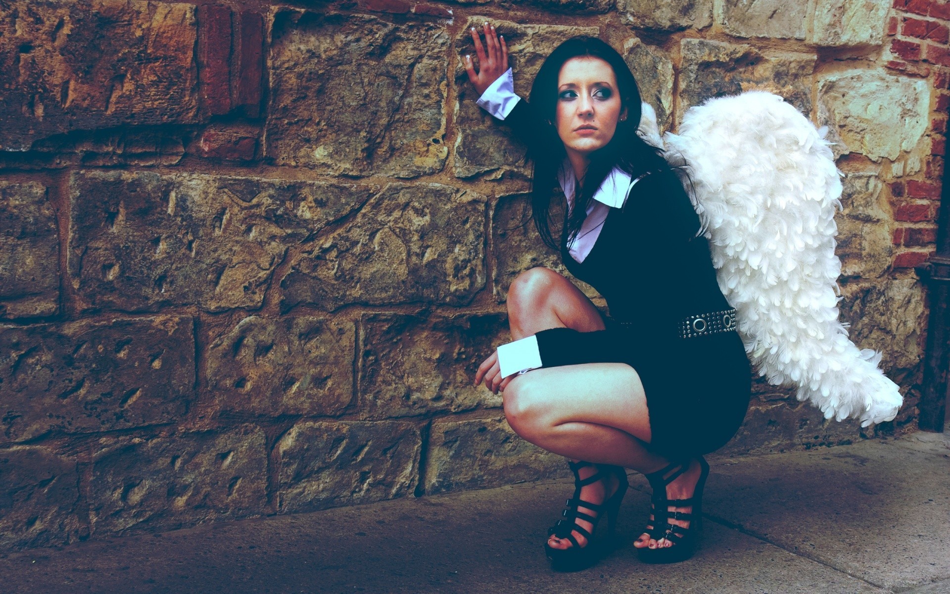 Ruda kobieta z maską Iron Mana w rękach. Iskierka