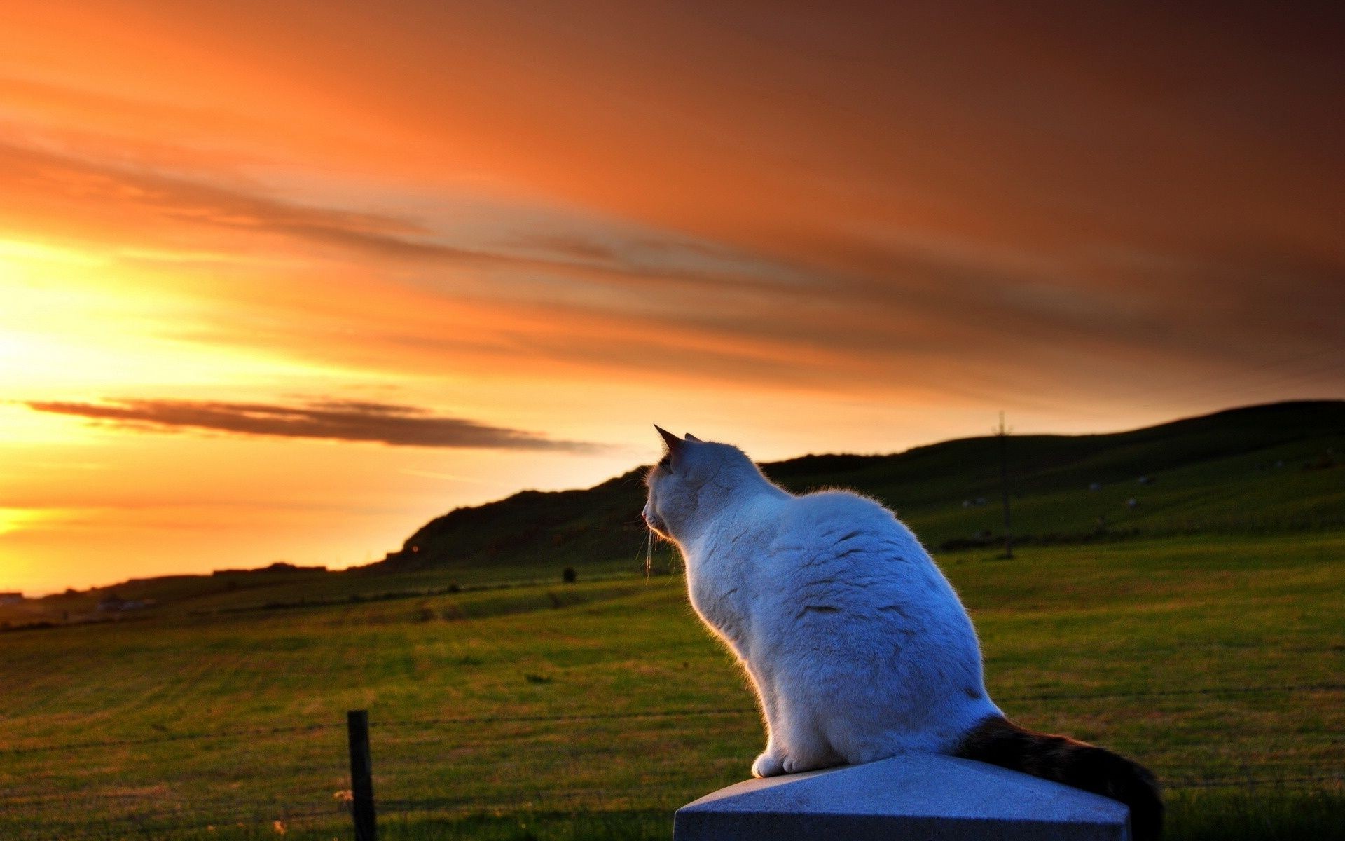 Kreskówkowy czarny kot na płocie na tle strasznego zamku