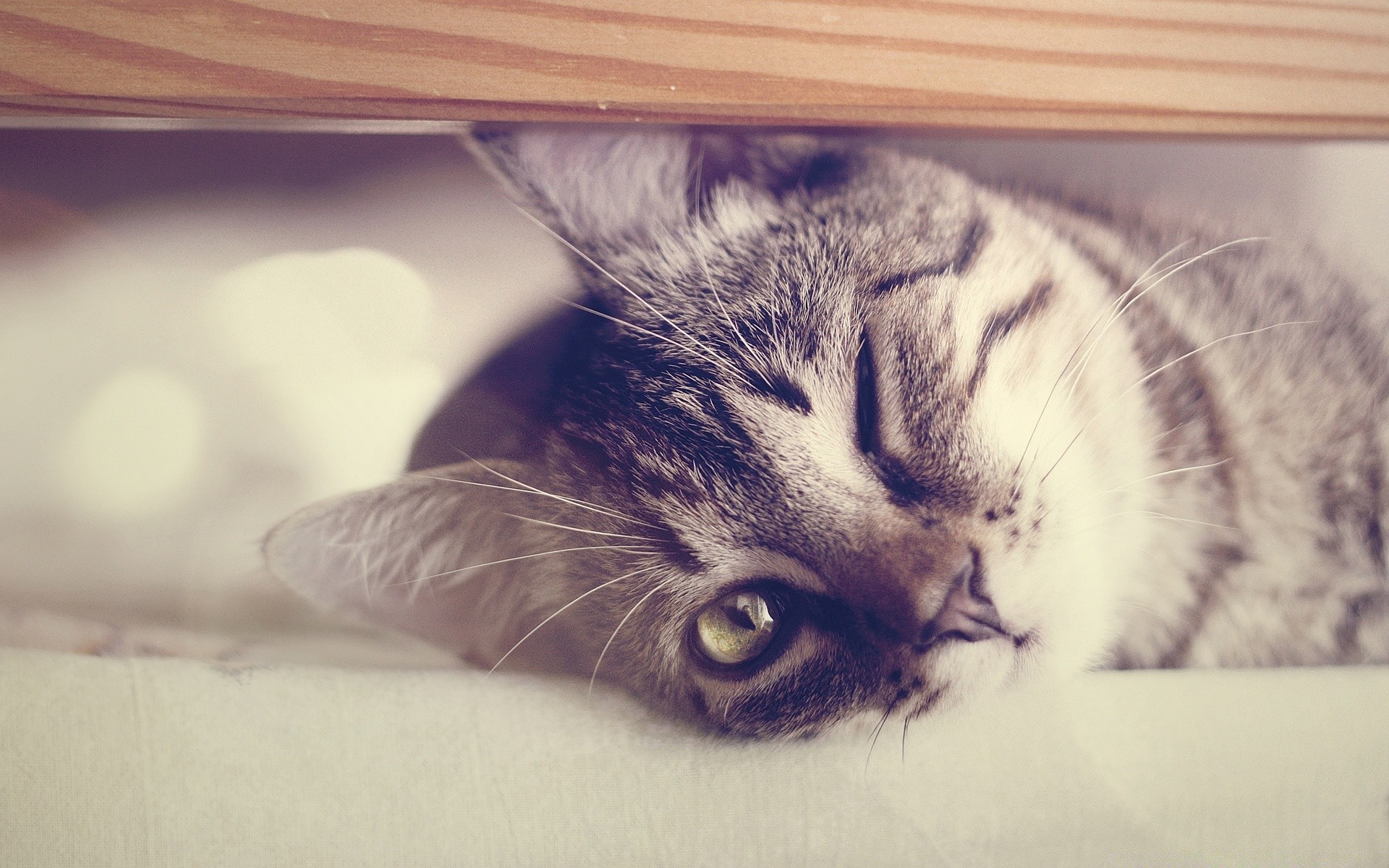 Kot z piękną krótką sierścią odpoczywa na zewnątrz