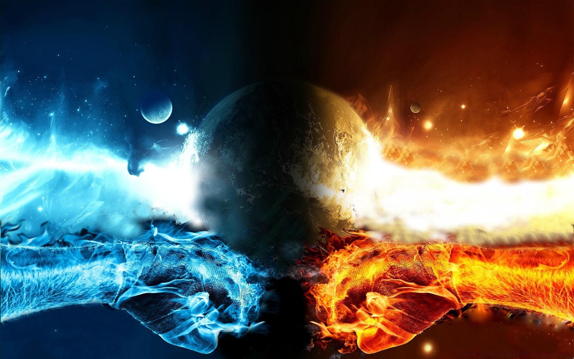 Kreatywny rysunek naszego wszechświata. Lód i płomień