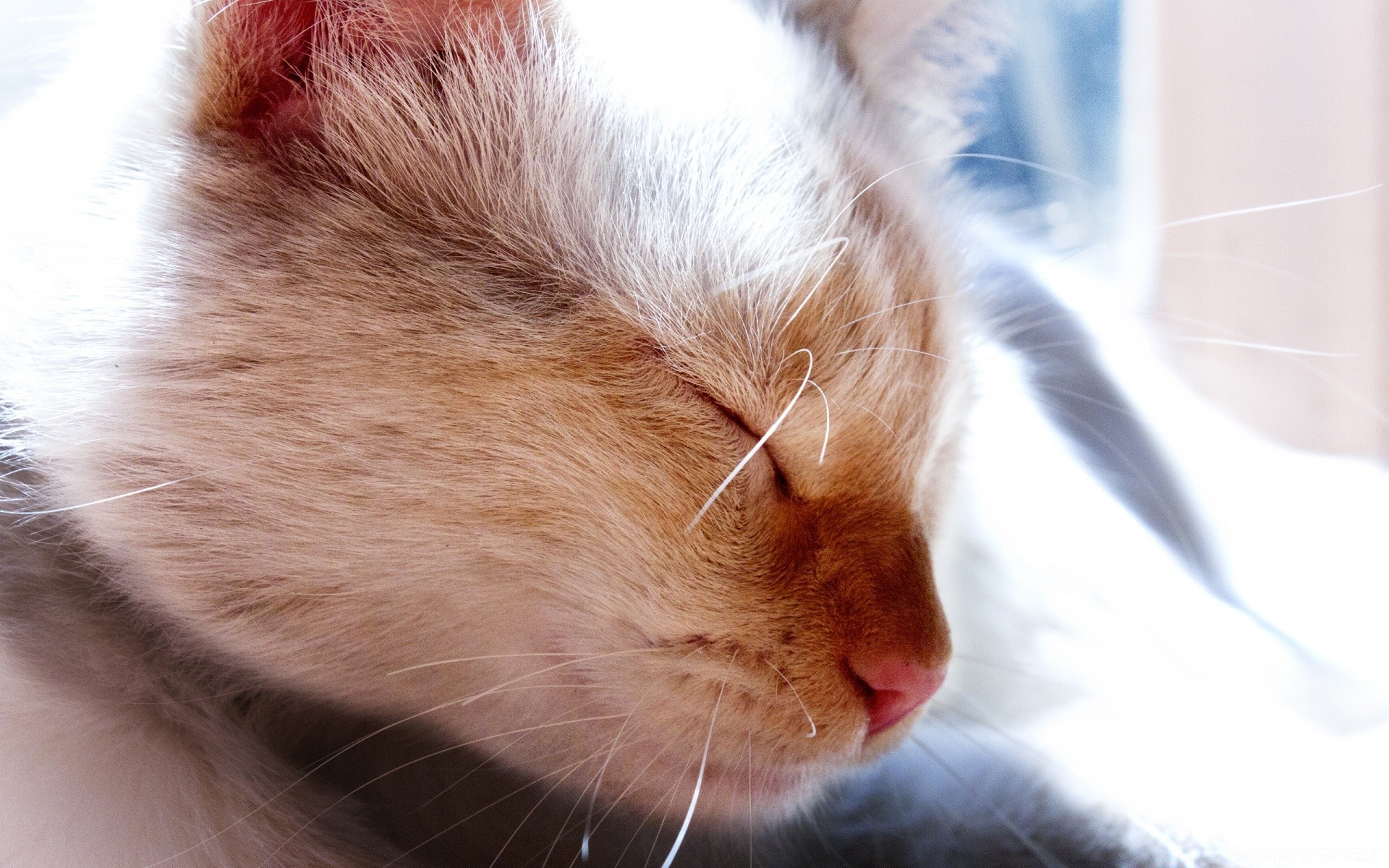 Biały Śpiący kot w promieniach