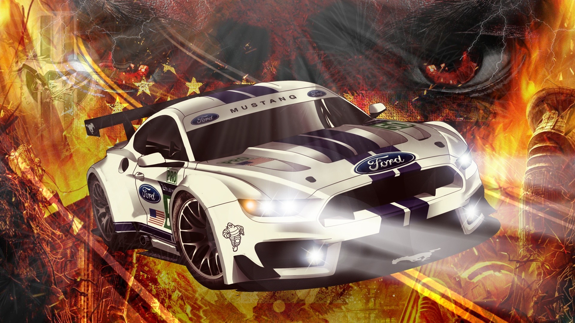 Biały samochód na kreatywnym tle