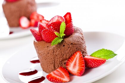 Deser z galaretką i czekoladą przyozdobiony jagodami