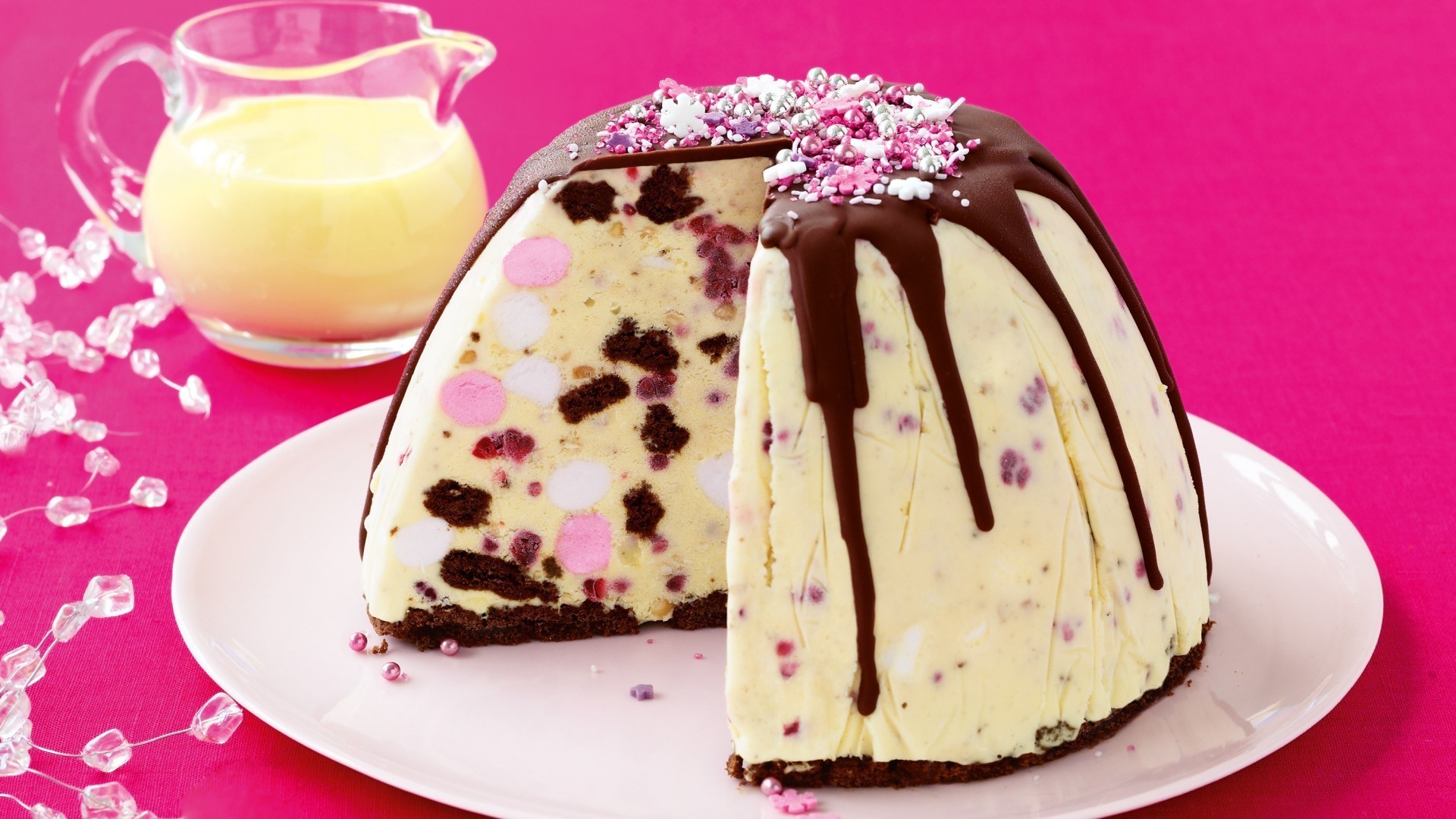 Deser truskawkowy. Pyszne truskawki. Różowe plamy