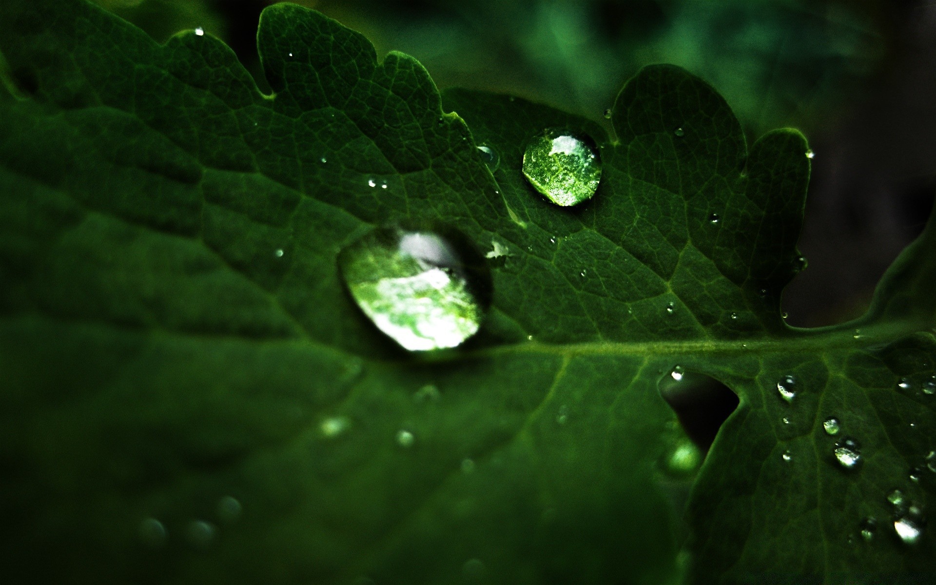 Krople na zielonej powierzchni