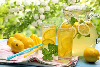 Świeżo wyciśnięty sos cytrynowy z aromatyczną miętąŚwieżo wyciśnięty sos cytrynowy z aromatyczną miętą
