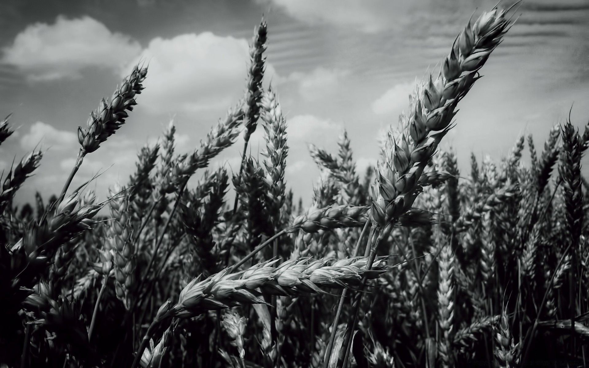 Czarno-białe tło pola przy pochmurnej pogodzie