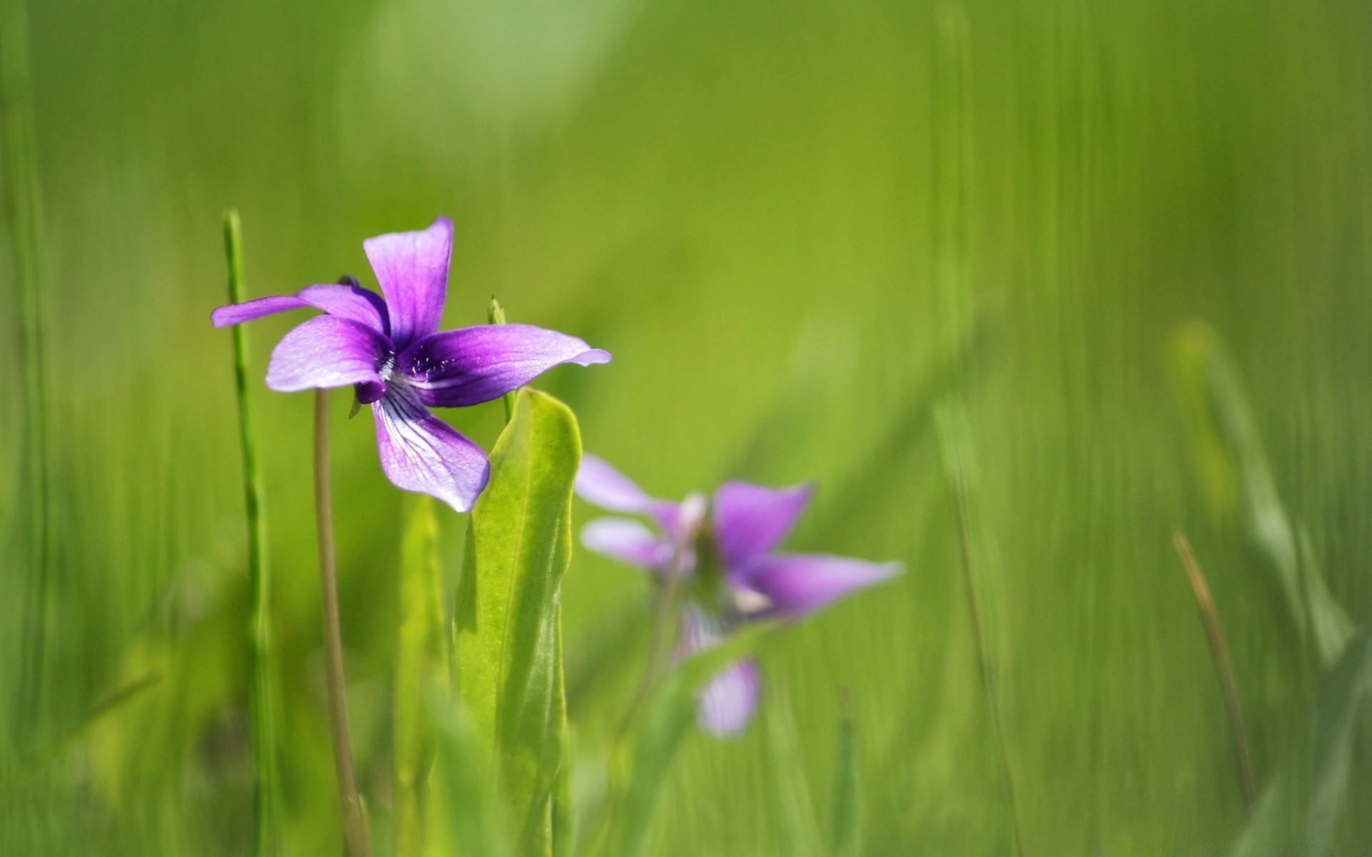 Fotografia makro fioletowy kwiat na zielonym tle