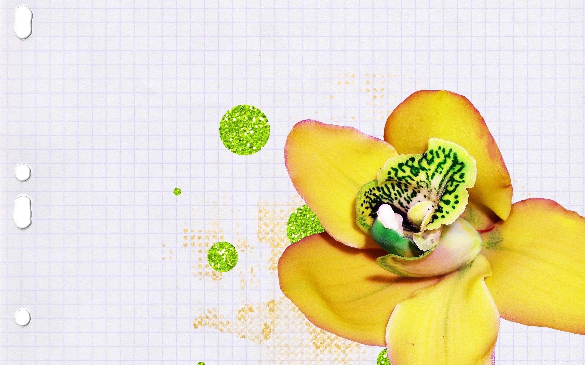 Kotek patrzy uważnie z bukietu żółtych kwiatów