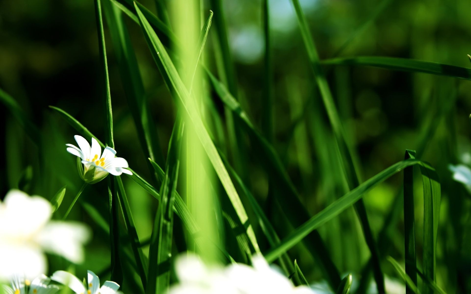 Biały kwiat na tle zieleni