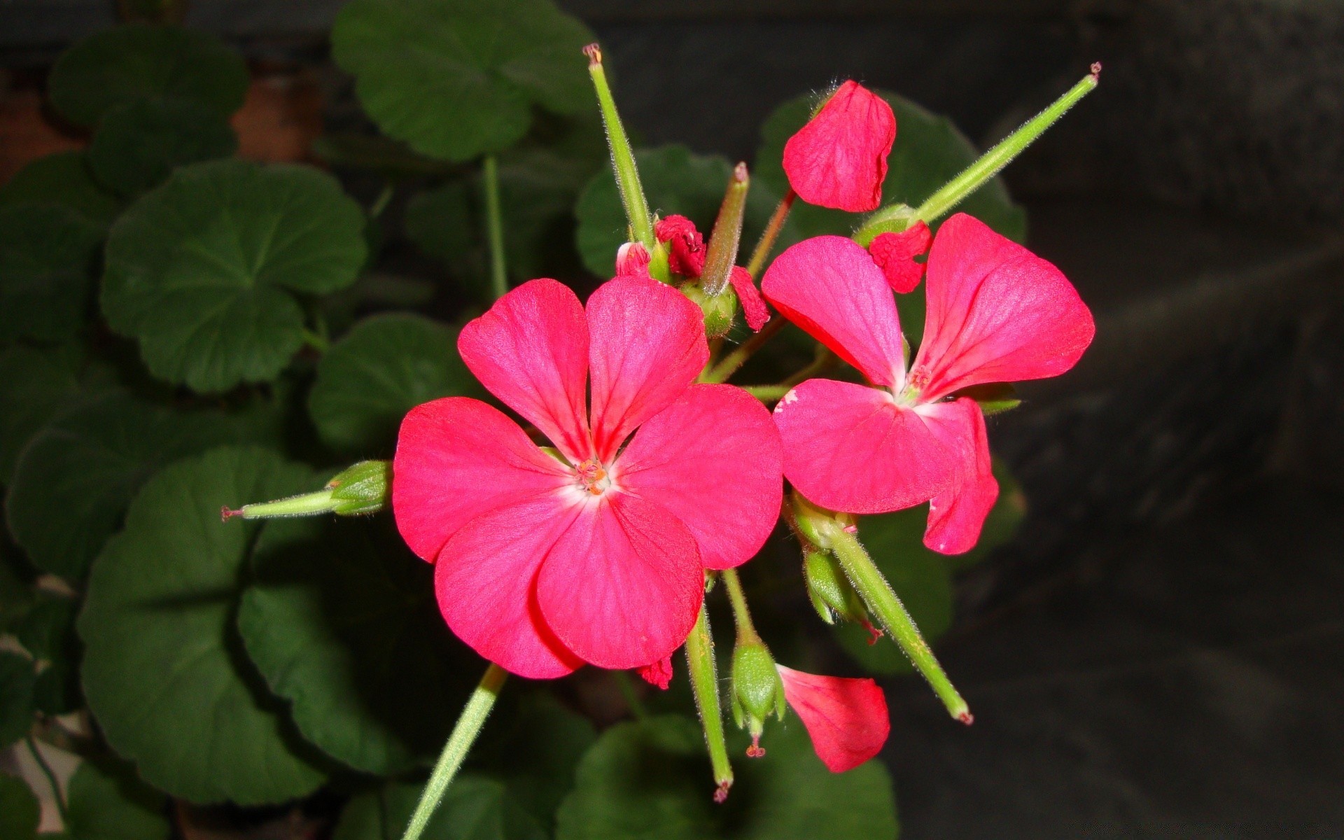 Kwiaty z różowymi liśćmi na tle ciemnej zieleni