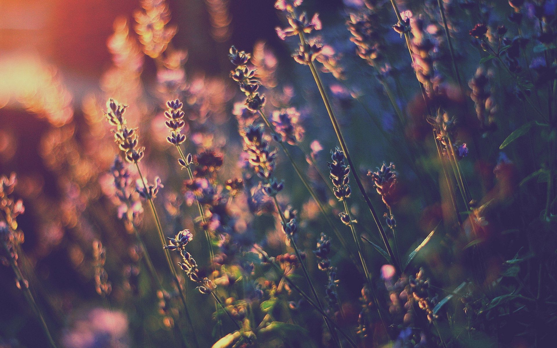 Rozmyte kwiaty lawendy o zachodzie słońca