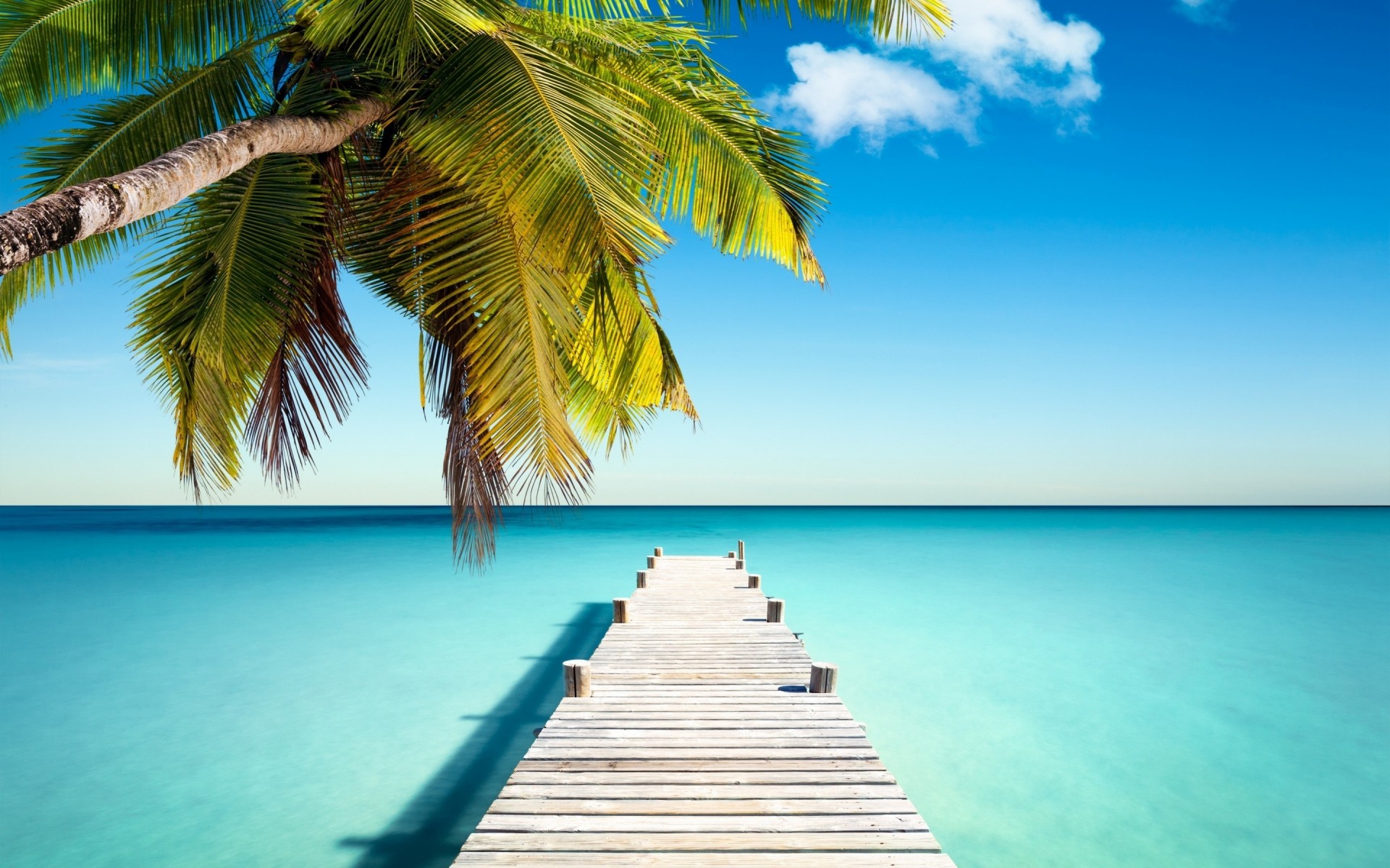Łódź na Lazurowym oceanie na tle czystego nieba