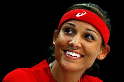 Uśmiechnięta sportowa dziewczyna w Czerwieni