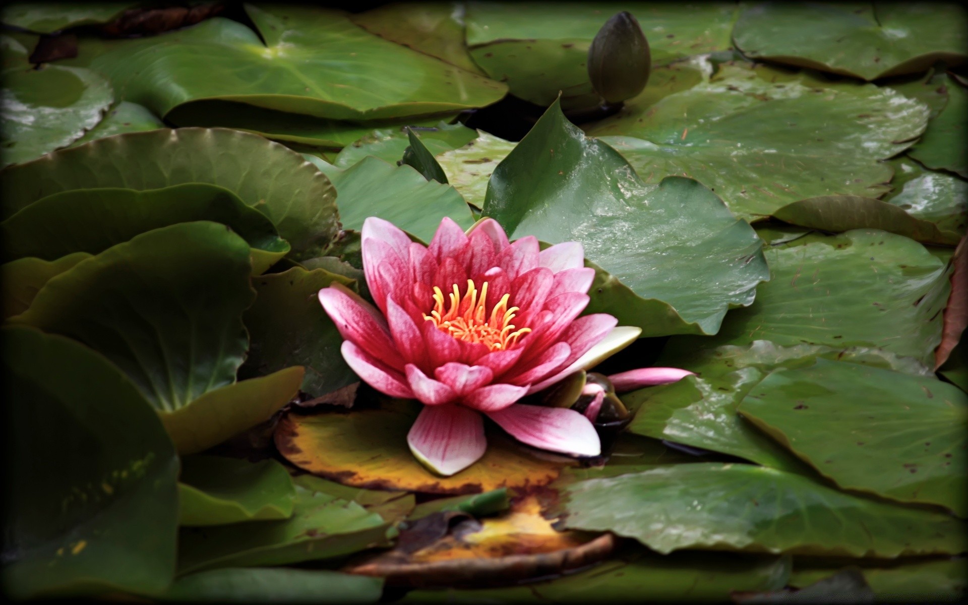 Lilie wodne lotosu na bagiennej powierzchni wody