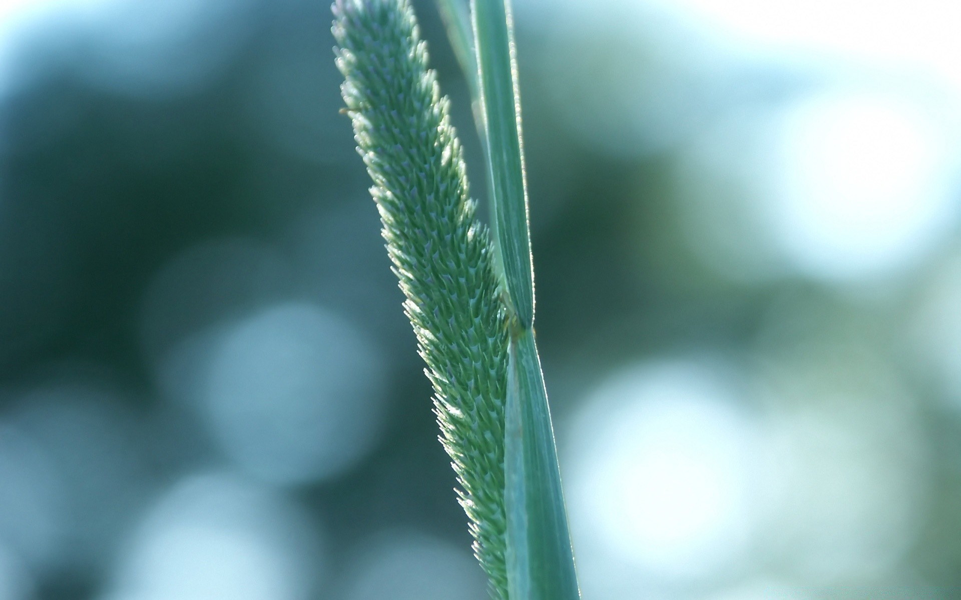 Zielona młoda trawa z kroplami rosy w promieniach słońca