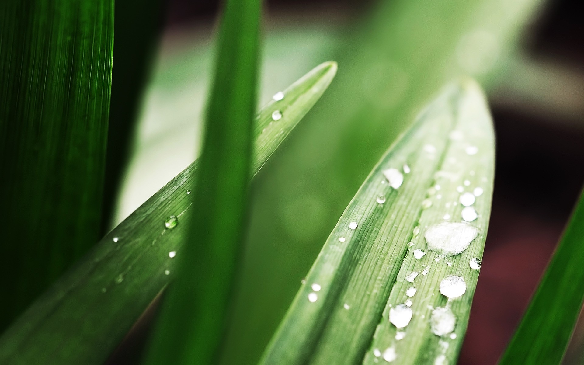 Makrofotografia źdźbła trawy z maleńką kropelką rosy