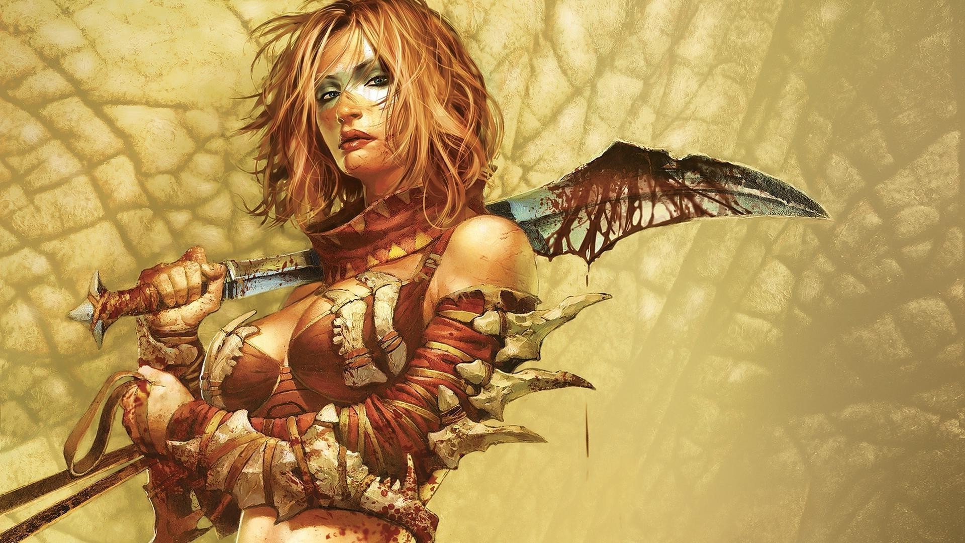 Amazon fantasy ręcznie rysowane z bronią