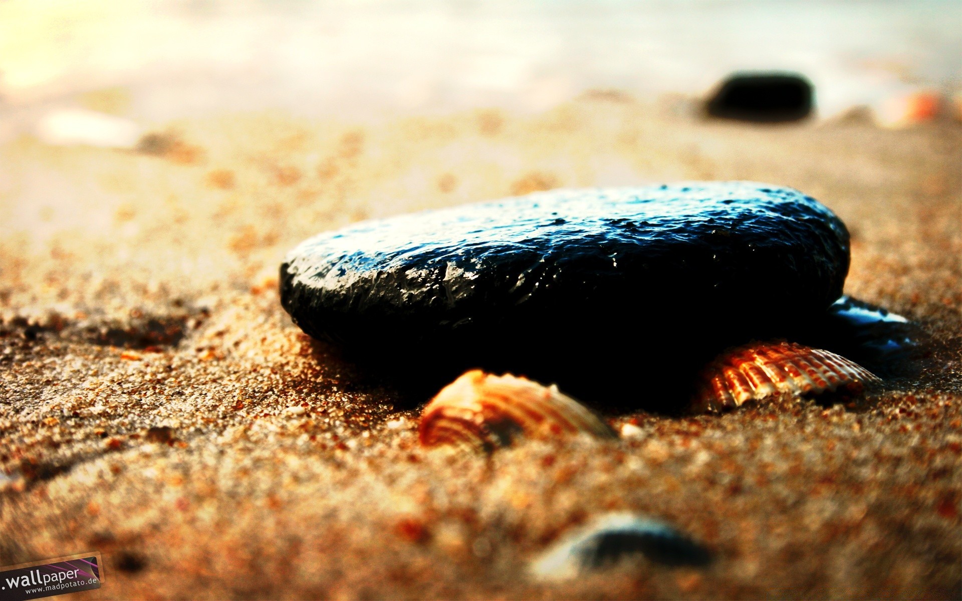 Kamień na piasku rzecznym Przyroda makro-fotografowanie