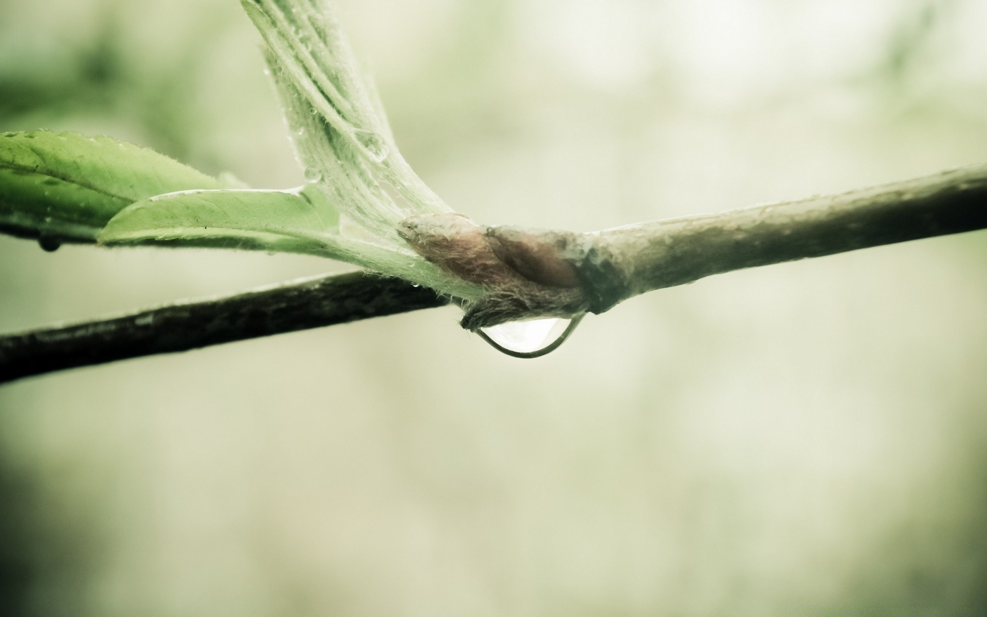 Makrofotografia złamanej gałązki z liśćmi i wysuszonymi jagodami, która spadła na powierzchnię wody