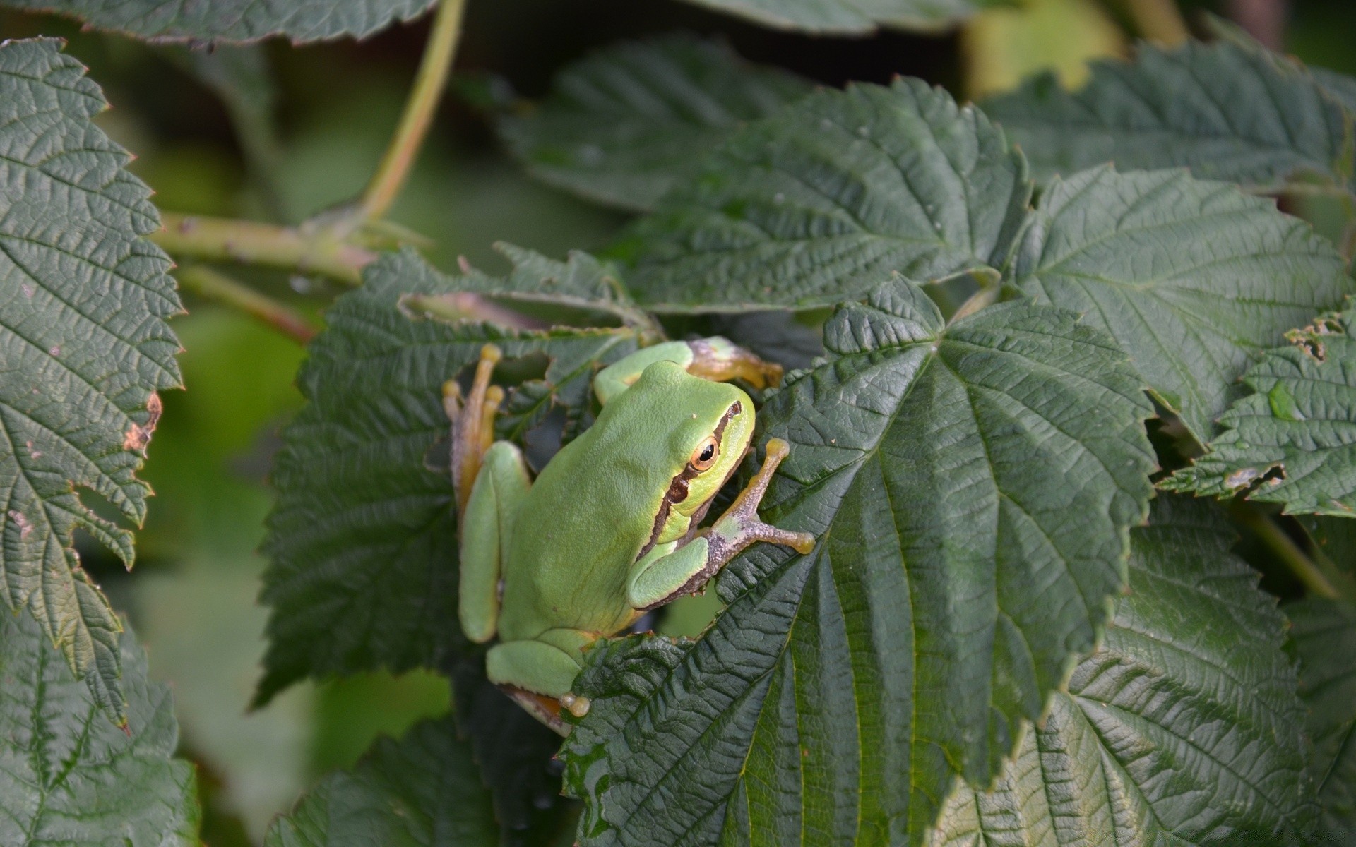 Żaba na zielonym liściu. Natura