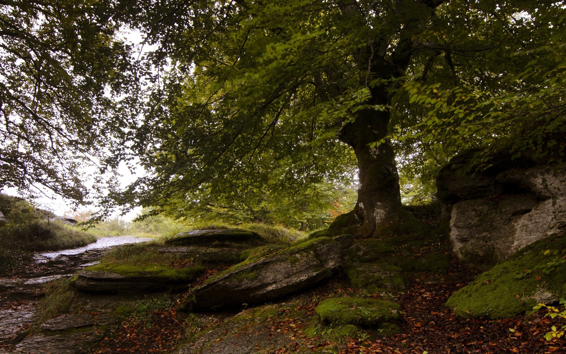 Drzewo w mchu-podstawa krajobrazu lasu