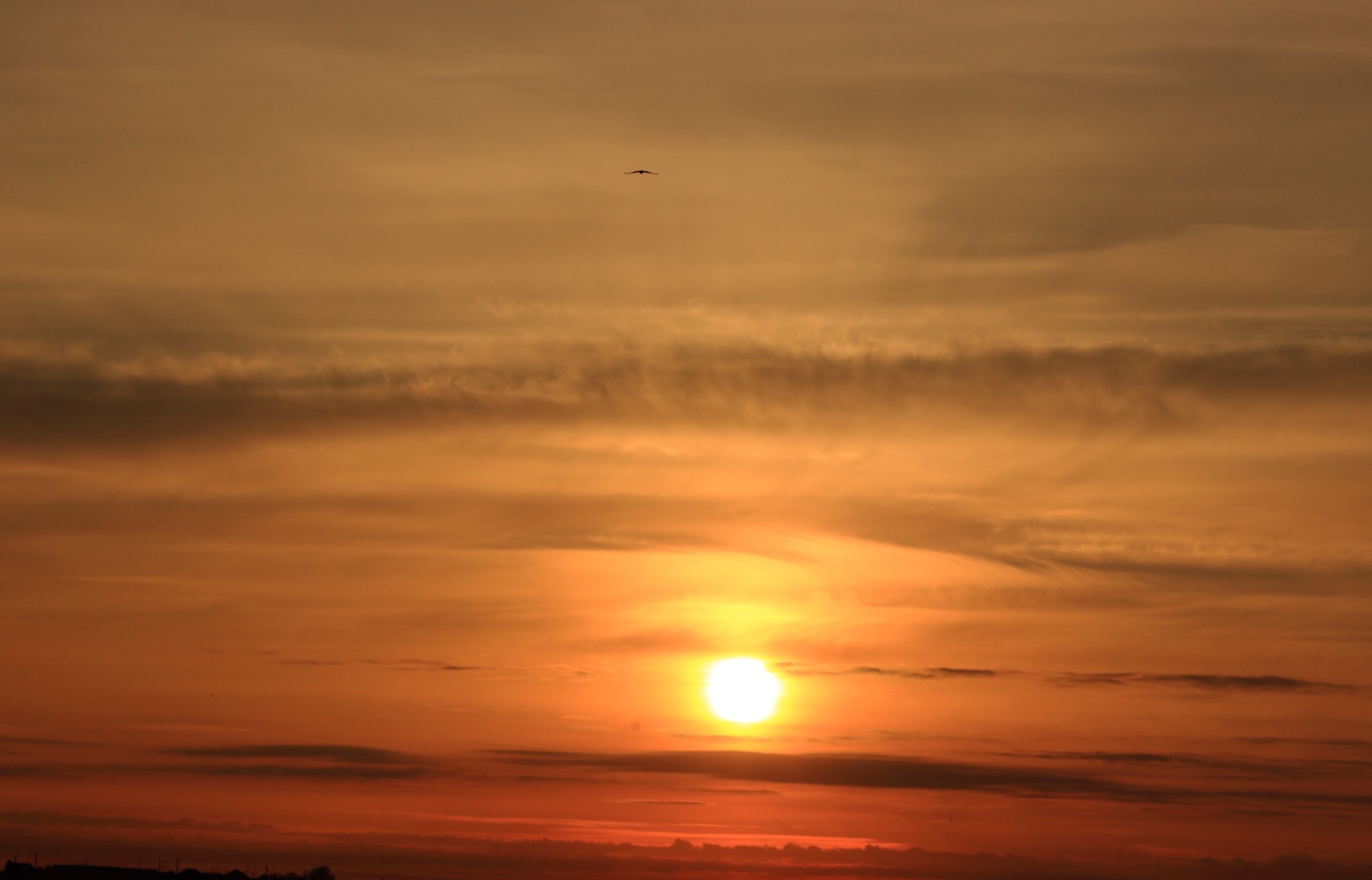 Na chmury i latająca Mewa o zachodzie słońca