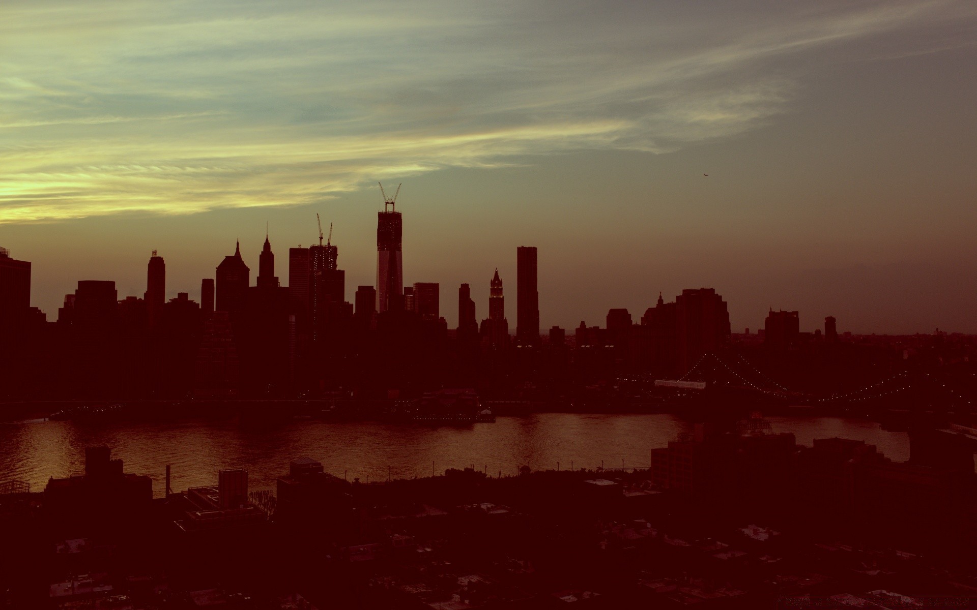 Miasto w Ameryce wieczorem kolorowo oświetlone
