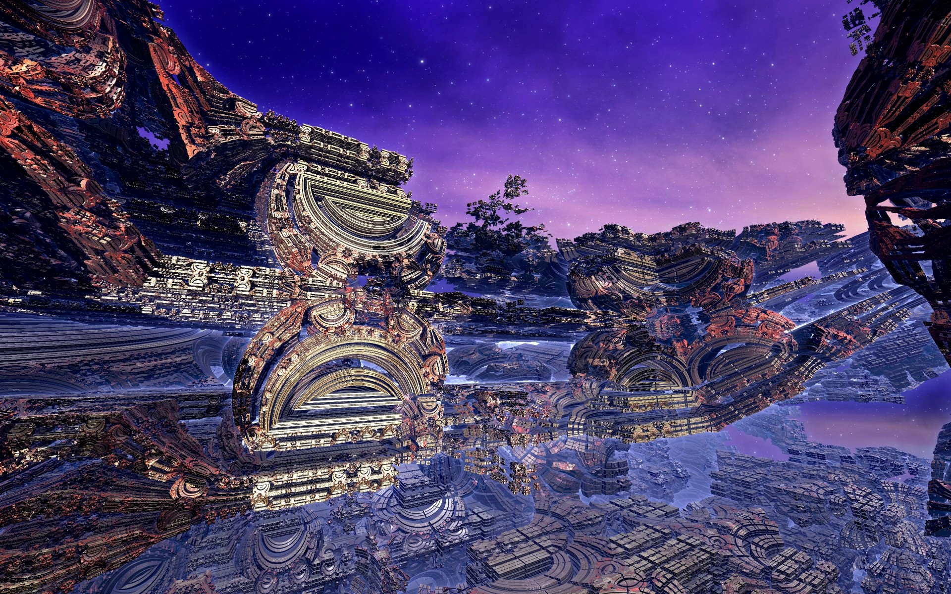 Fantastyczne miasto pod rozgwieżdżonym niebem