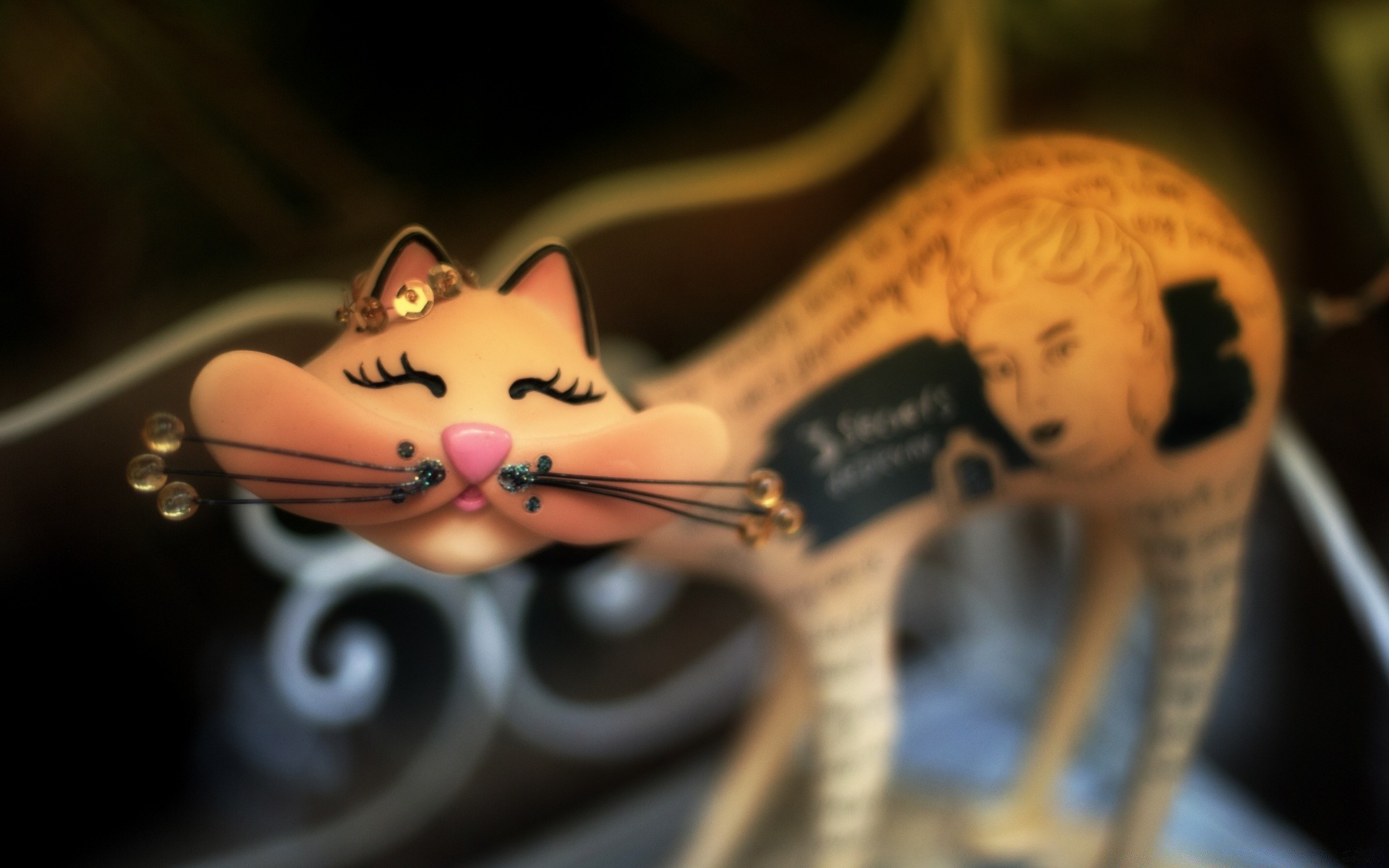 Figurka lekko uśmiechniętego rudego kota stojącego na ławce