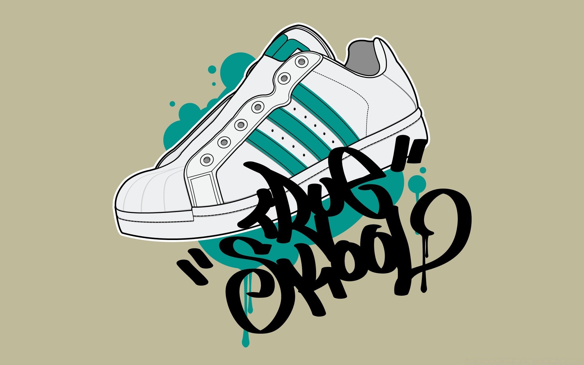 Graffiti. Białe trampki z zielonymi paskami