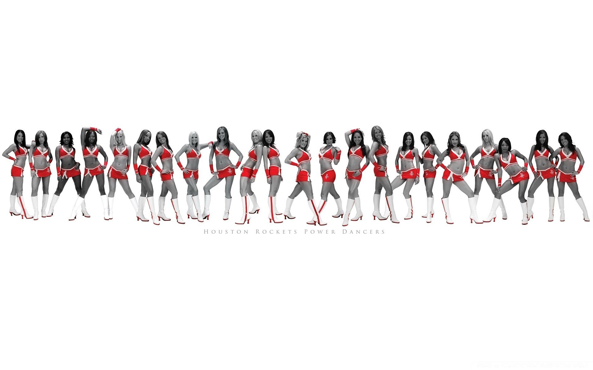 Tłum dziewcząt w czerwonych strojach kąpielowych